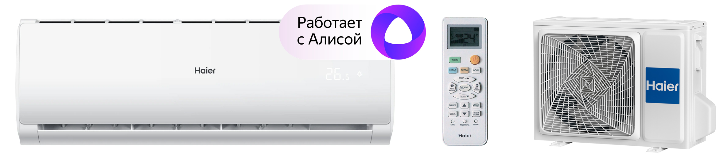 • Поддержка EVO — управление климатом еще никогда не было таким простым и удобным. Работает с Алисой: голосовое управление и создание сценариев, работа через любые устройства на базе Яндекс Алиса.