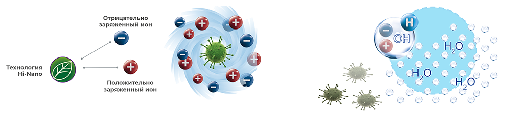 • Ni Nano (ионизатор) — превосходно борется с бактериями, вирусами, плесенью и запахами и способствует удалению пыли и пыльцы, создавая положительно и отрицательно заряженные ионы