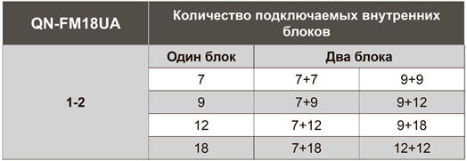 Количество подключаемых внутренних блоков: