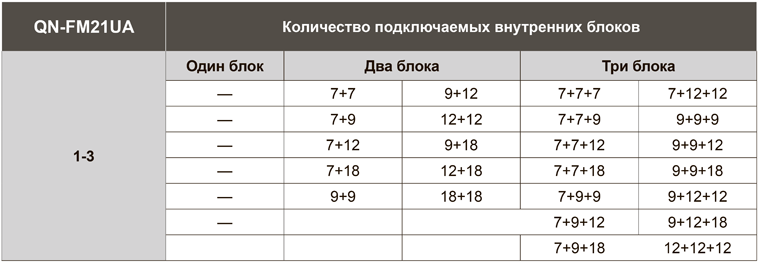 Количество подключаемых внутренних блоков: