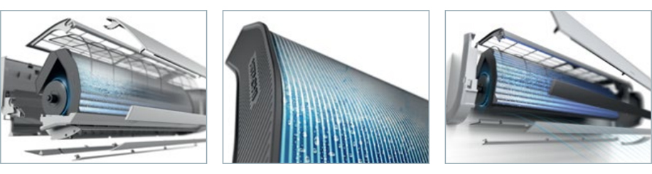 • Frost Wash — инновационная система самоочистки теплообменника: в течение 20 минут теплообменник замораживается до -15 °C, затем, в течение 1 минуты происходит резкое оттаивание, и с образовавшимся конденсатом смываются все загрязнения и выводятся через дренаж. После этого в течение 1 часа в режиме обогрева и вентиляции теплообменник просушивается и обеззараживается.