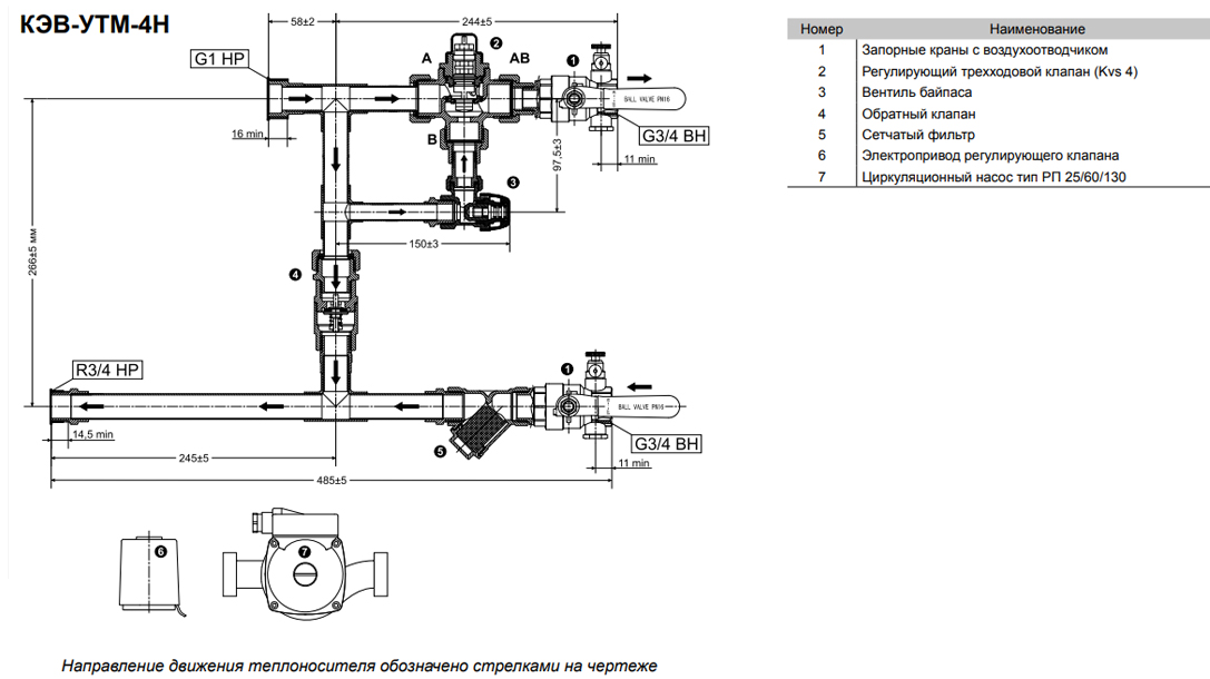 - При полностью закрытом клапане, регулирующий байпас обеспечивает постоянный проход воды, во избежание замерзания теплоносителя.