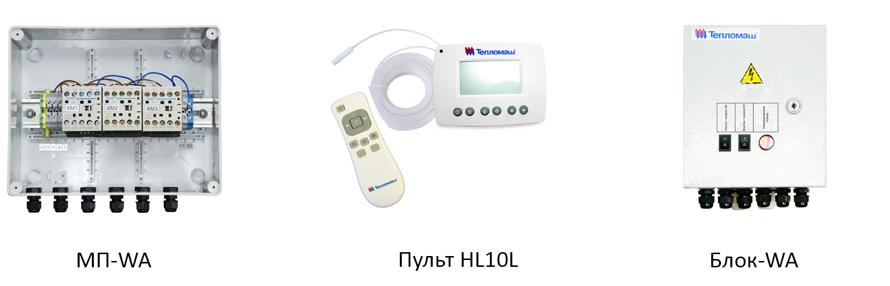 Модуль предназначен для подключения одной завесы со степенью защиты IP54 к электрической сети и управления с помощью выносного пульта HL10L. К одному пульту HL10L можно подключить до двадцати завес через модули МП-WA. Подключение дополнительного оборудования необходимо осуществлять при помощи БЛОК-WA.