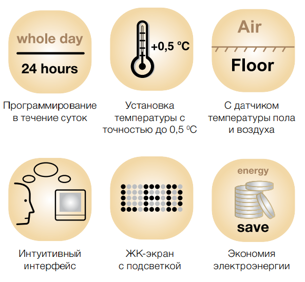 Программируемый электронный терморегулятор позволяет устанавливать индивидуальные температурные режимы на каждый час в течение суток.