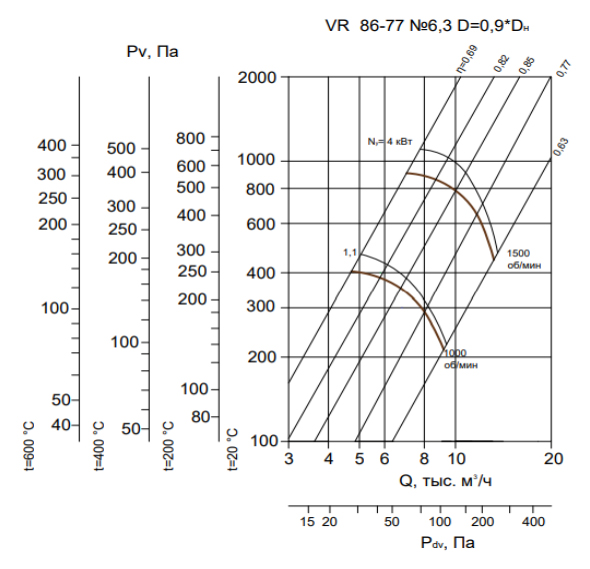 Радиальный вентилятор низкого давления ВР 86-77 / №6,3 / 4 кВт / 1500 об./мин. / Прав / 0°