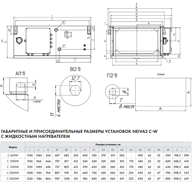 Приточная установка Neiva 2 C-600-W1-F5-OF-DZ-R