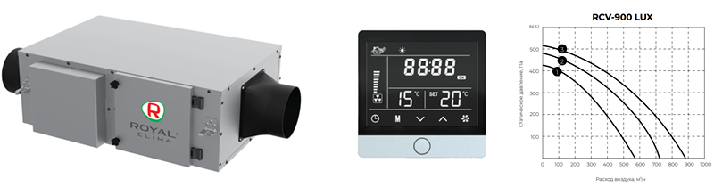 Приточная вентиляционная установка Royal Clima RCV-900 LUX с нагревателем EH-3000 серия VENTO